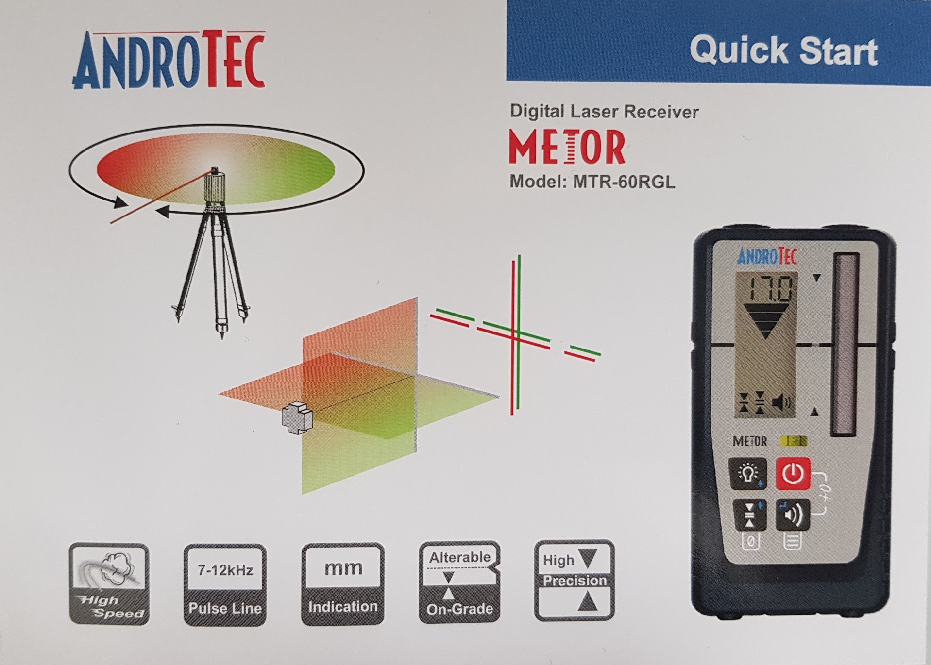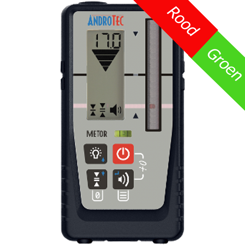 De Androtec MTR-65RGL is een super nauwkeurige ontvanger met mm aanduiding voor zowel rode als groene roterende en kruislijnlasers die met een puls frequentie zijn uitgerust.( handontvangerstand)