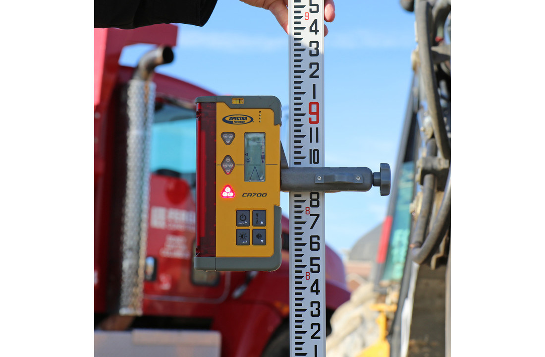 Deze perfecte combinatie van een handontvanger en een machine ontvanger van Spectra is nieuw in het assortiment. Deze zeer robuuste laser ontvanger is ideaal voor beide toepassingen. Door de sterke magneet kan deze gemakkelijk op de graafmachine bevestigd worden. De felle LED’s zijn goed te zien bij daglicht. Hierdoor is het hoogteverschil gemakkelijk af te lezen. Met de meegeleverde baakklem kan de Spectra CR700 ook als handontvanger gebruikt worden in combinatie met een laserbaak, dat maakt de Spectra CR700 een multifunctionele laserontvanger.