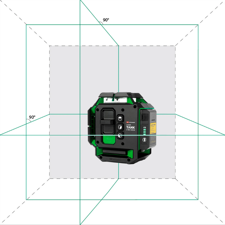 De ADA LaserTANK 3-360 projecteert 3 lijnen 360°. Dankzij de loodrechte laservlakken kun je gemakkelijk elk type oppervlak markeren. Ideaal voor bouw- of reparatiewerkzaamheden, zowel voor binnen- als buitentoepassingen.