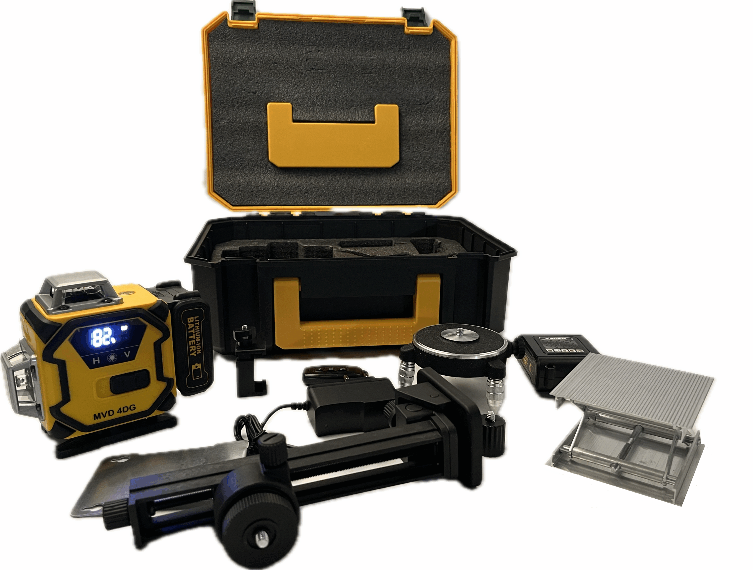 De MVD 4DG laser wordt geleverd in een robuuste, verstevigde koffer gevuld met schuim die bestand is tegen vallen en gewichtsbelasting.