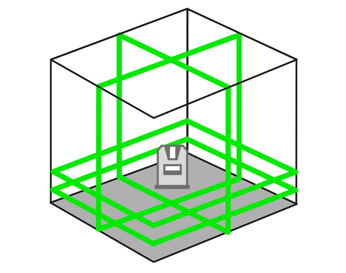 | Functies | : | 2x horizontale 360°-laserstraal, 2x verticale laserstralen, lijnen afzonderlijk in- en uitschakelen |