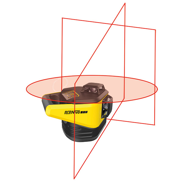 Roterende roodlicht laser 3×360° horizontaal, verticaal en afschot.