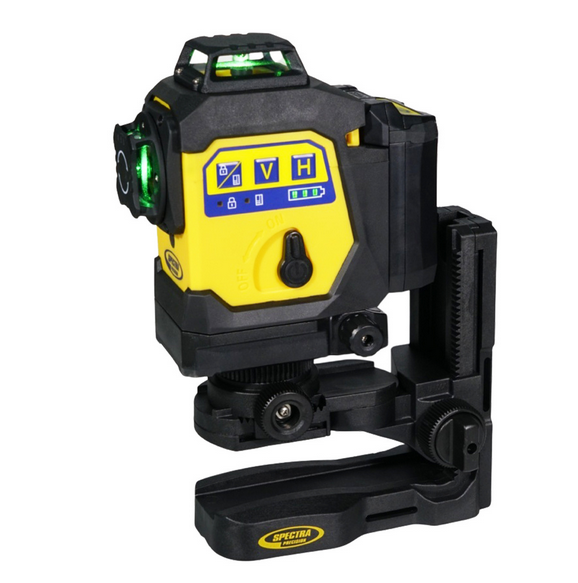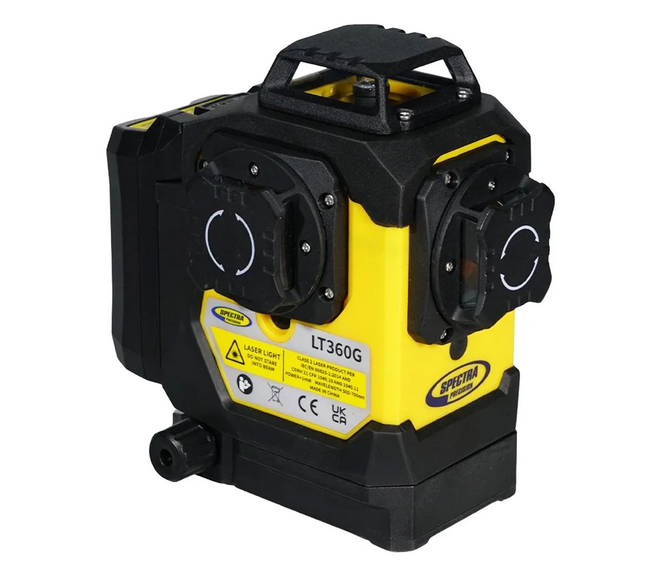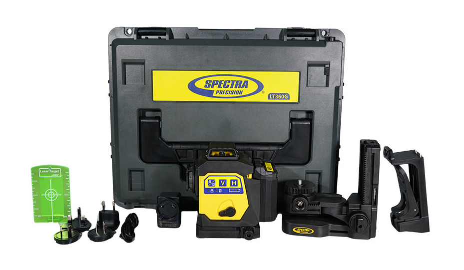De Spectra laser is voorzien van 3 laserlijnen die 360° projecteren. Het biedt veel gebruiksgemak, de horizontale laserlijn geeft een horizontale lijn over de volledige 360° dus hoeft nooit meer verplaatst te worden binnen dezelfde ruimte. Ook de twee verticale laserlijnen van de Spectra LT360G zijn 360° en staan haaks op elkaar. Dit is noodzakelijk om haakse hoeken uit te zetten voor bijvoorbeeld het plaatsen van systeemwanden of muren.
