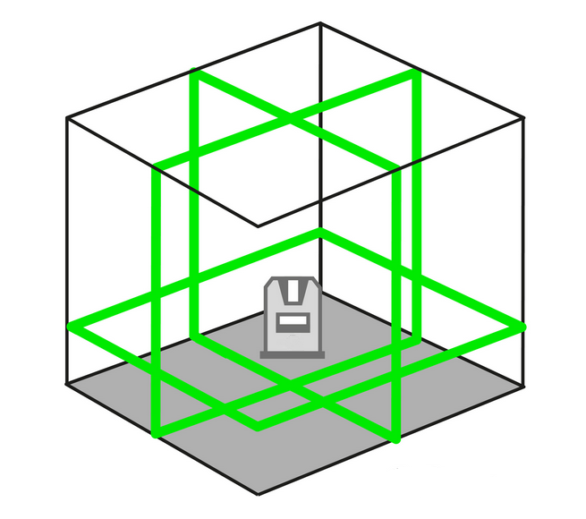 | Functies: | 1x horizontaal 360°, 2x verticaal 360°, lijnen afzonderlijk in- en uitschakelen |