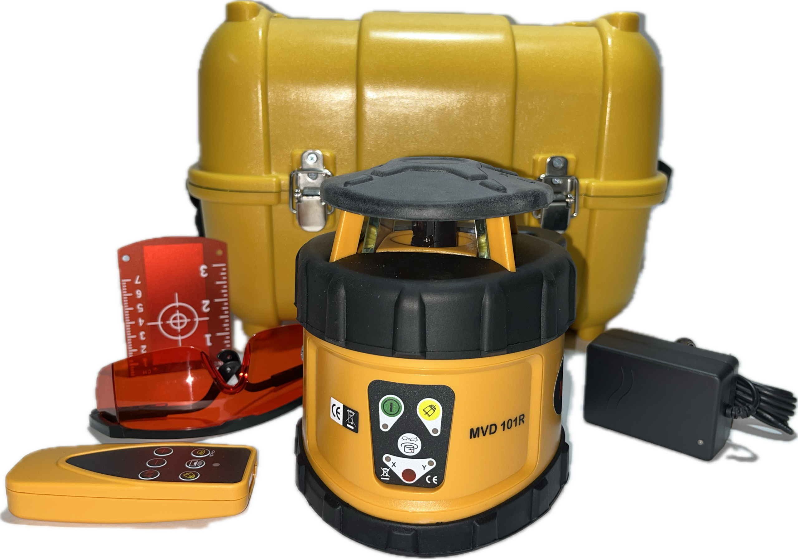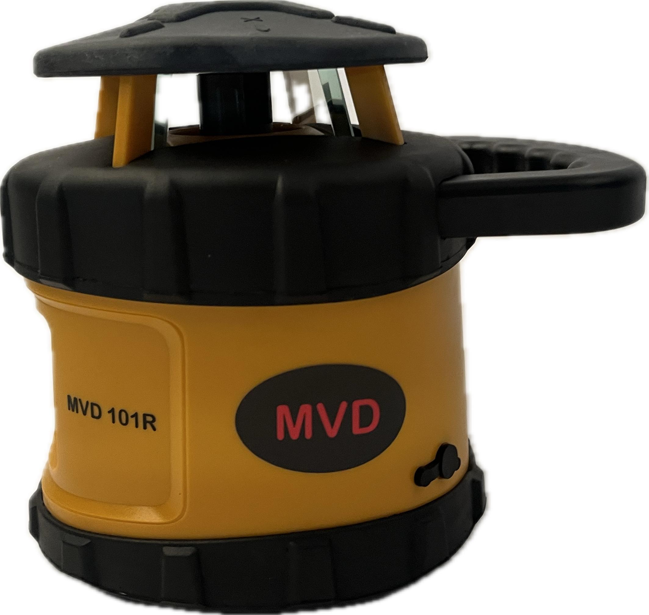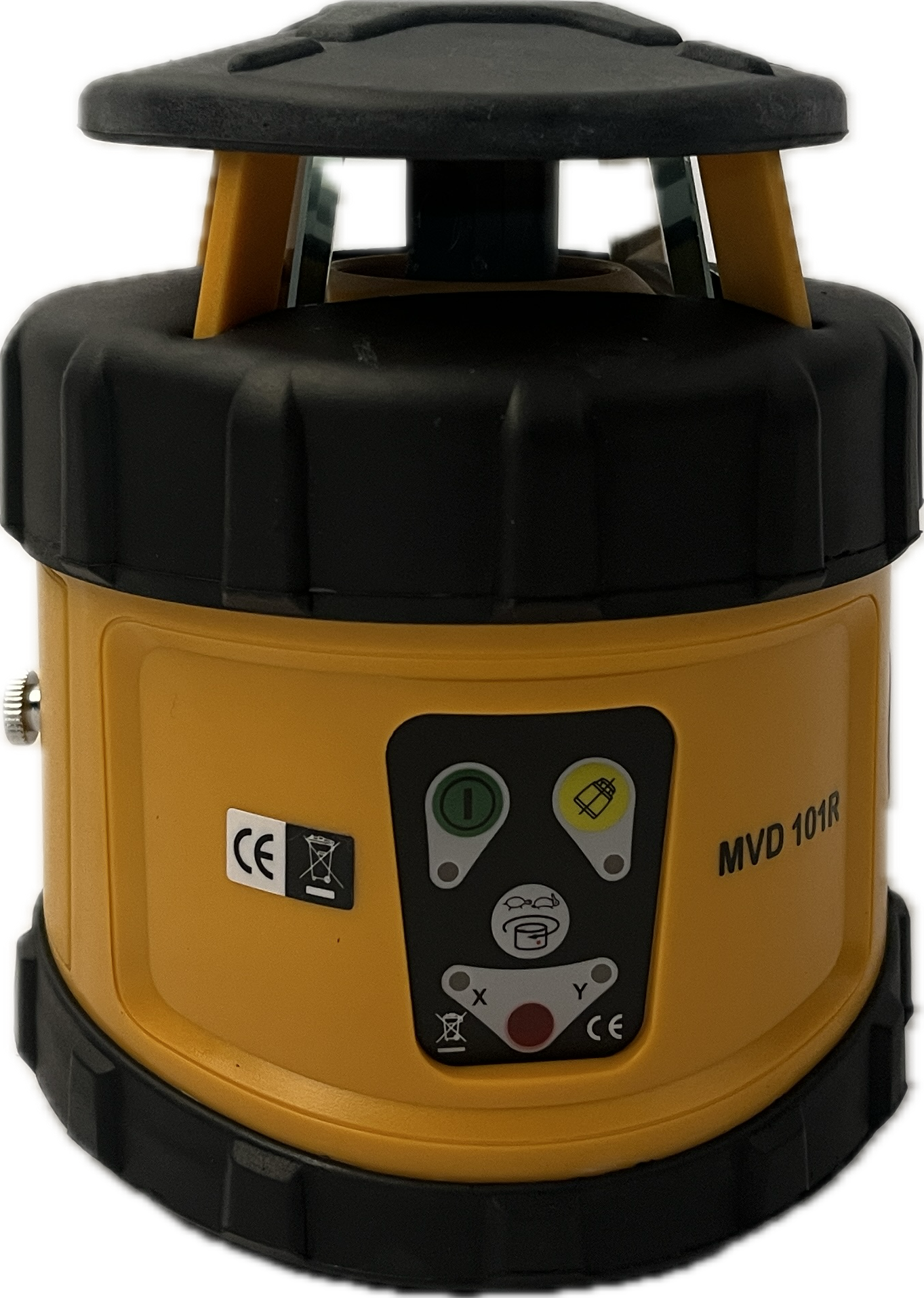 MVD 101R roterende bouwlaser is een gebruiksvriendelijke laser vanwege de één-knops bediening, zet hem neer en met 1 druk op de knop gaat hij aan en stelt hij zichzelf waterpas.