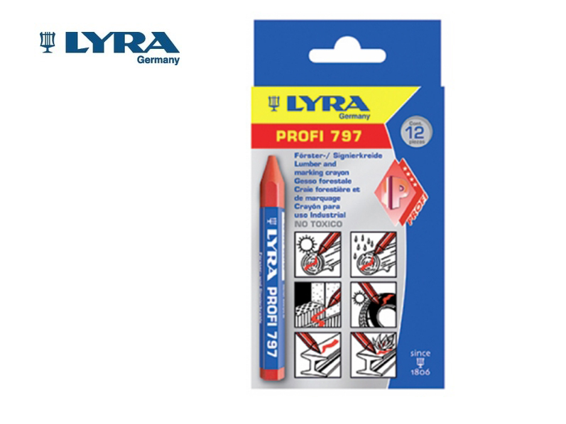 Lyra 797 vetkrijt, kleur rood, 11 mm, verpakking per 12 stuksOp voorraad