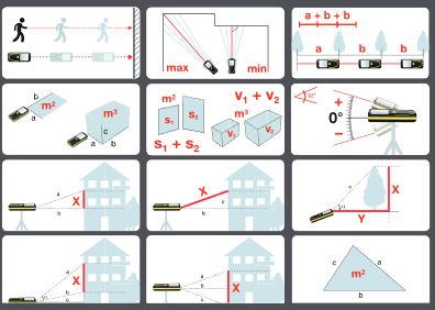 Eenvoud en vindingrijkheid: de FLASH C100-afstandsmeter integreert de basisfuncties van een afstandsmeter zoals min / max-meting, registratie van de laatste metingen, uitzetfunctie, Pythagoras-functie enz … en een camera!